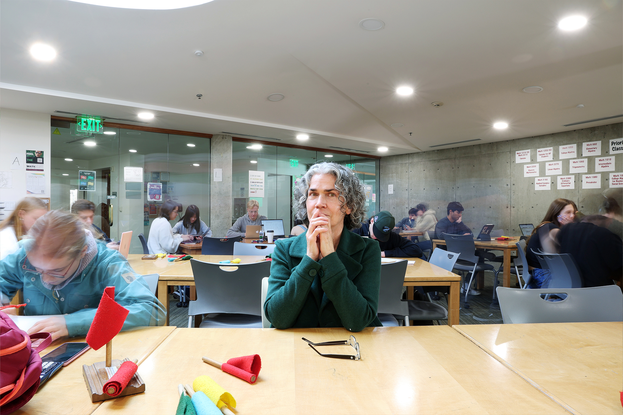 Above: Director Lisa Penfold sitting among the activity of the Math Center.