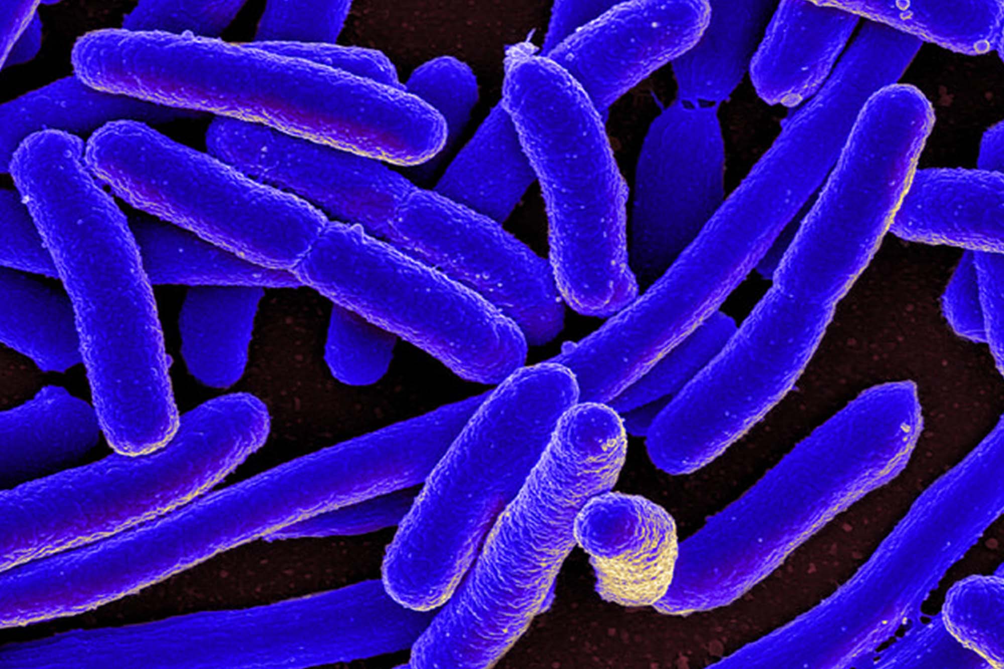Photo: Colorized scanning electron micrograph of Escherichia coli, grown in culture and adhered to a cover slip by NIAID on Flickr
